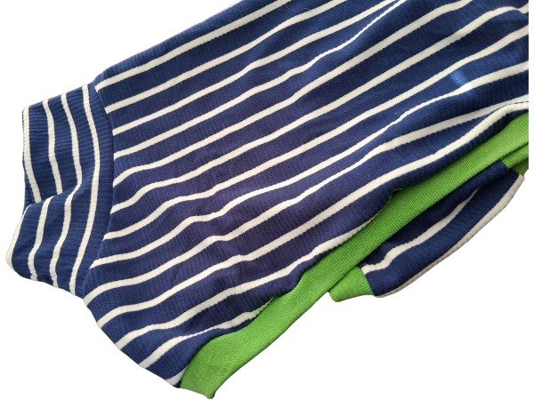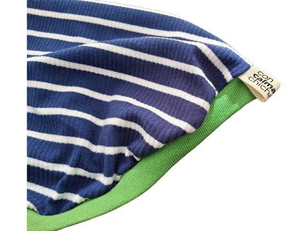 Confeccionado en Morley Brush frizado. Azul con rayas blancas y detalle de puño en rib verde lima Un tejido de acabado suave y cálido qué lo hace ideal para usar los días de frío.