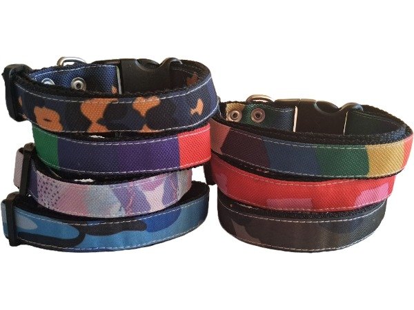 Collares de 2 cm de ancho con diferentes estampados. Tiene un broche de acetato y se pueden regular. Son muy livianos.