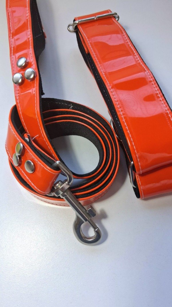 Correa de 1.5 m de largo x 2.5 cm de ancho. Cinta de correa reforzada totalmente forrada en charol con mosquetones reforzados.
