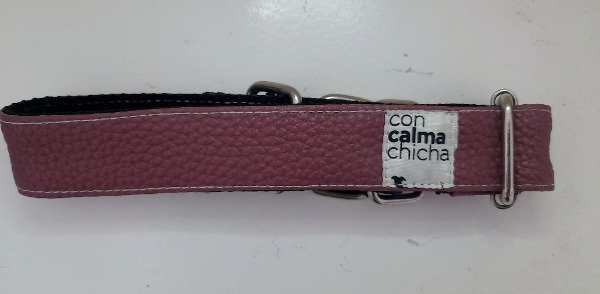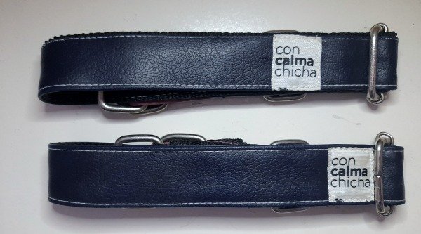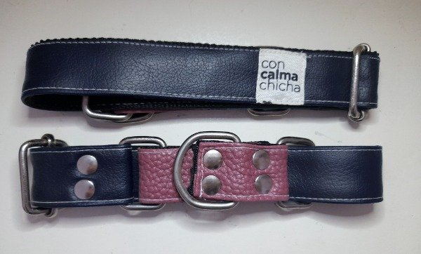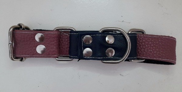 Collar de eco cuero texturado, delantera del mismo material .Combinando un color en su frente y otro en su delantera.